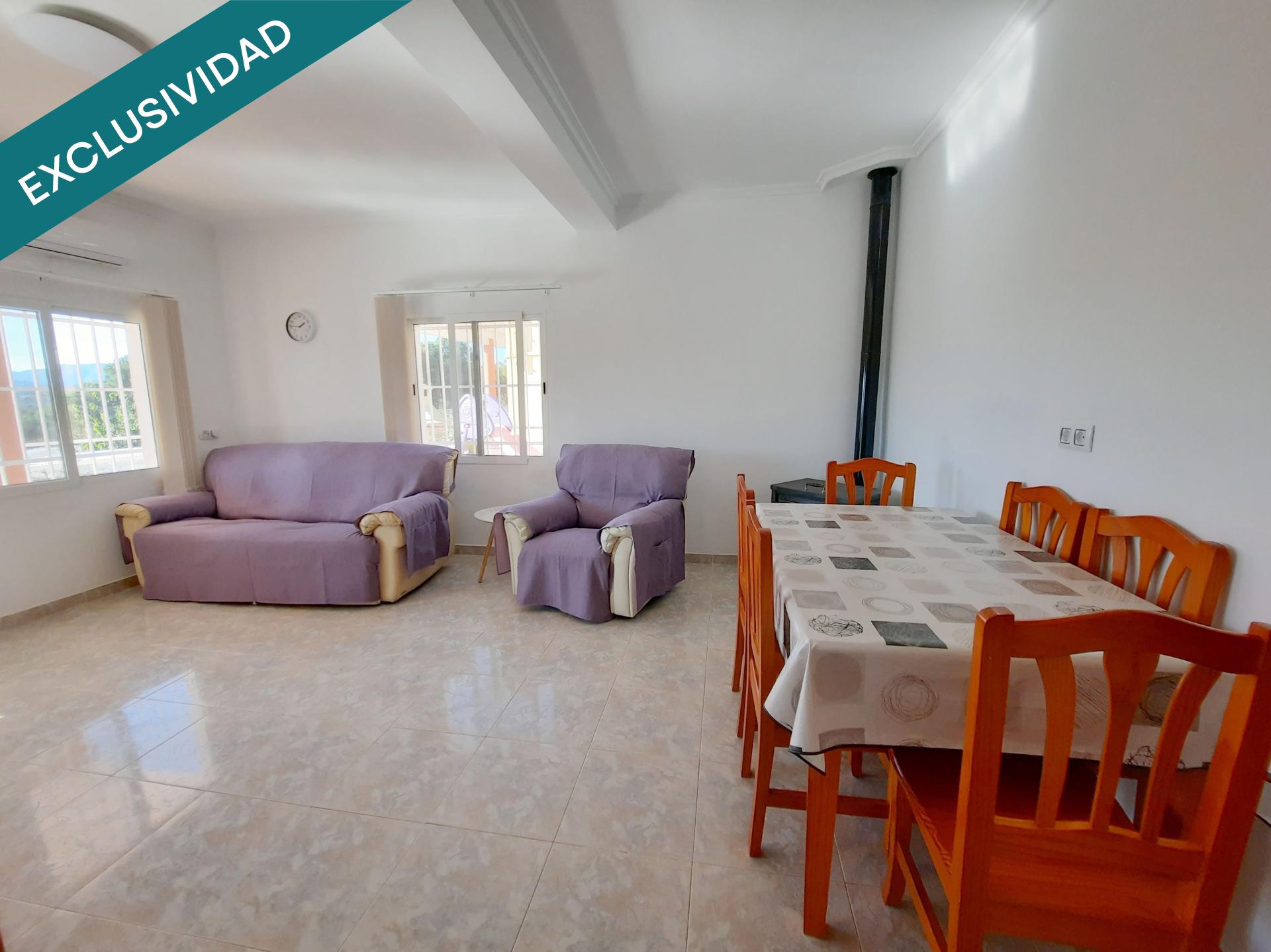 Ofrecemos en exclusiva este fabuloso Chalet rural en plena naturaleza con unas impresionantes vistas a la Sierra. La vivienda de 162m construidos se encuentra totalmente reformada y para entrar a vivir. Su amplio salón comedor con grandes ventanales, vistas a las montañas y su estufa de leña hacen de él un lugar luminoso y acogedor. La encantadora y reformada cocina mantiene su campana de obra y el brocal de pozo de agua de lluvia manteniendo la esencia de las cocinas valencianas. Dispone de cuatro habitaciones muy amplias con camas de matrimonio de las cuales dos poseen amplios armarios empotrados. El cuarto de baño con bañera culmina la planta principal del inmueble. Alrededor del chalet amplias terrazas cubiertas y descubiertas permiten disfrutar del espacio exterior durante todas las estaciones del año. En su terraza trasera posee un práctico y espacioso paellero perfecto para cocinar grandes paellas y barbacoas.