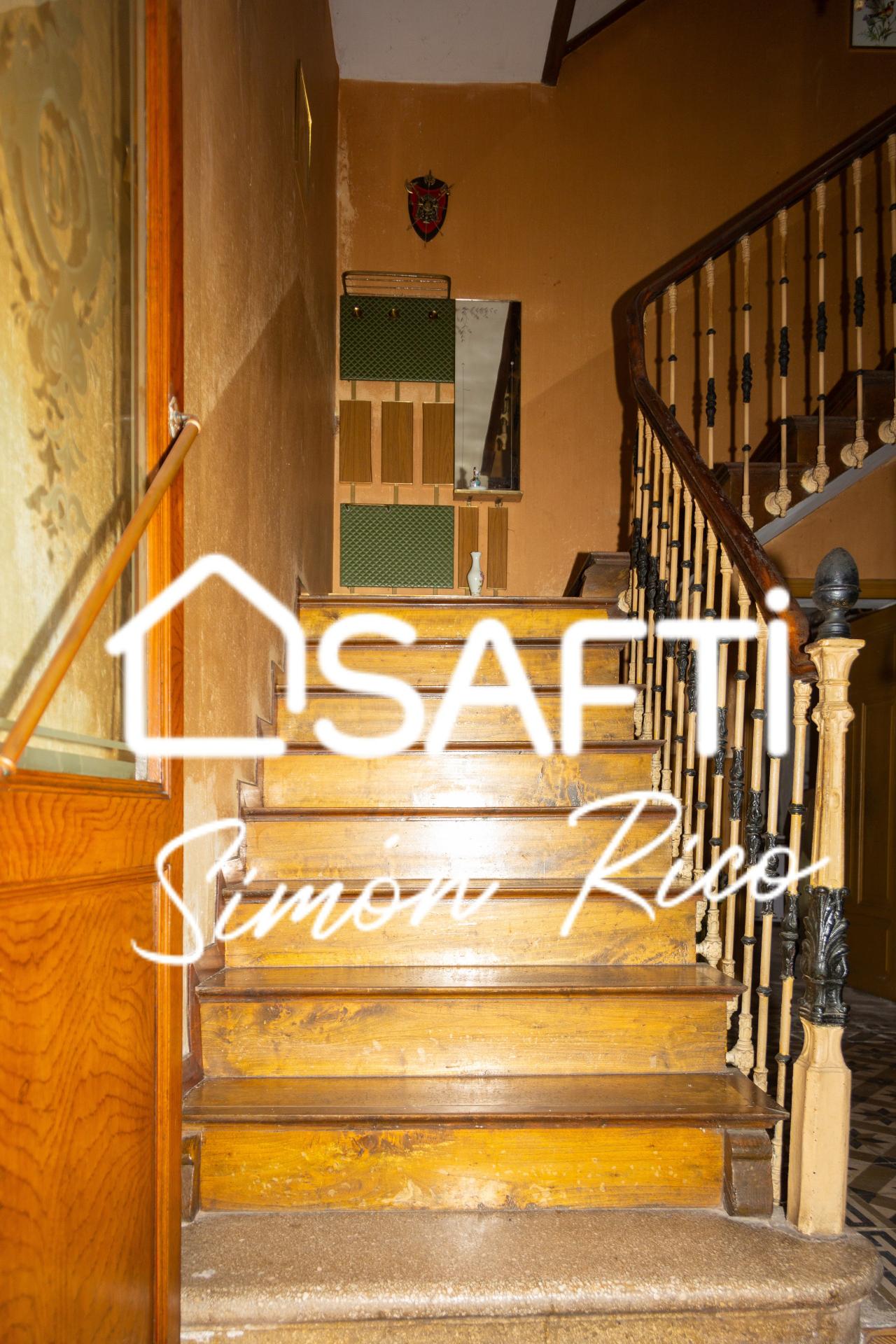 Escalera señorial: Escalera de época en hierro colado con peldaños y pasamanos en madera noble, que añade un aire majestuoso al espacio.