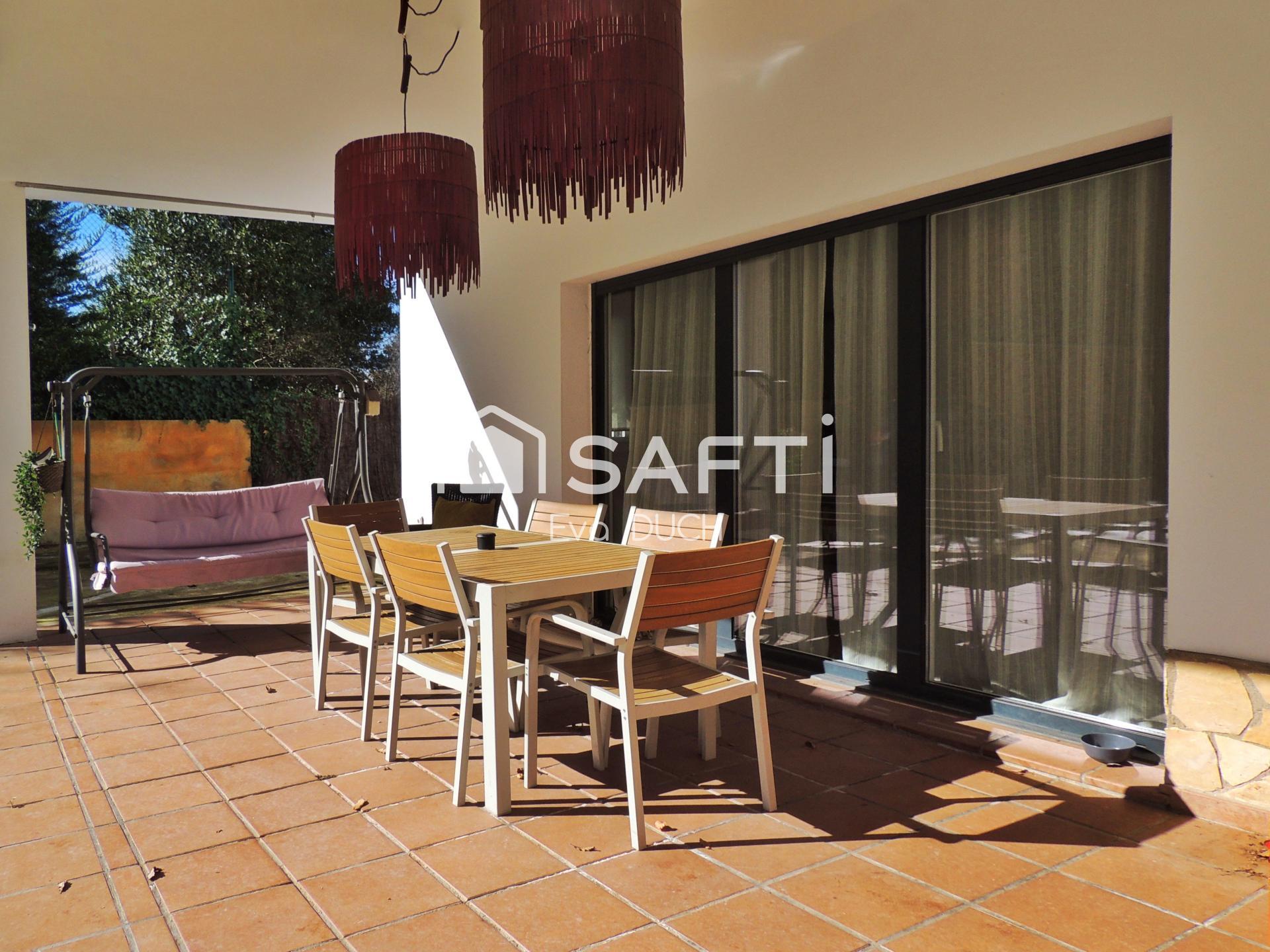 Los acabados aportan confort: persianas eléctricas y cerramientos con doble acristalamiento. En el exterior encontramos una piscina con sistema de calentamiento, un porche muy soleado con barbacoa y amplios espacios para estacionar vehículos.