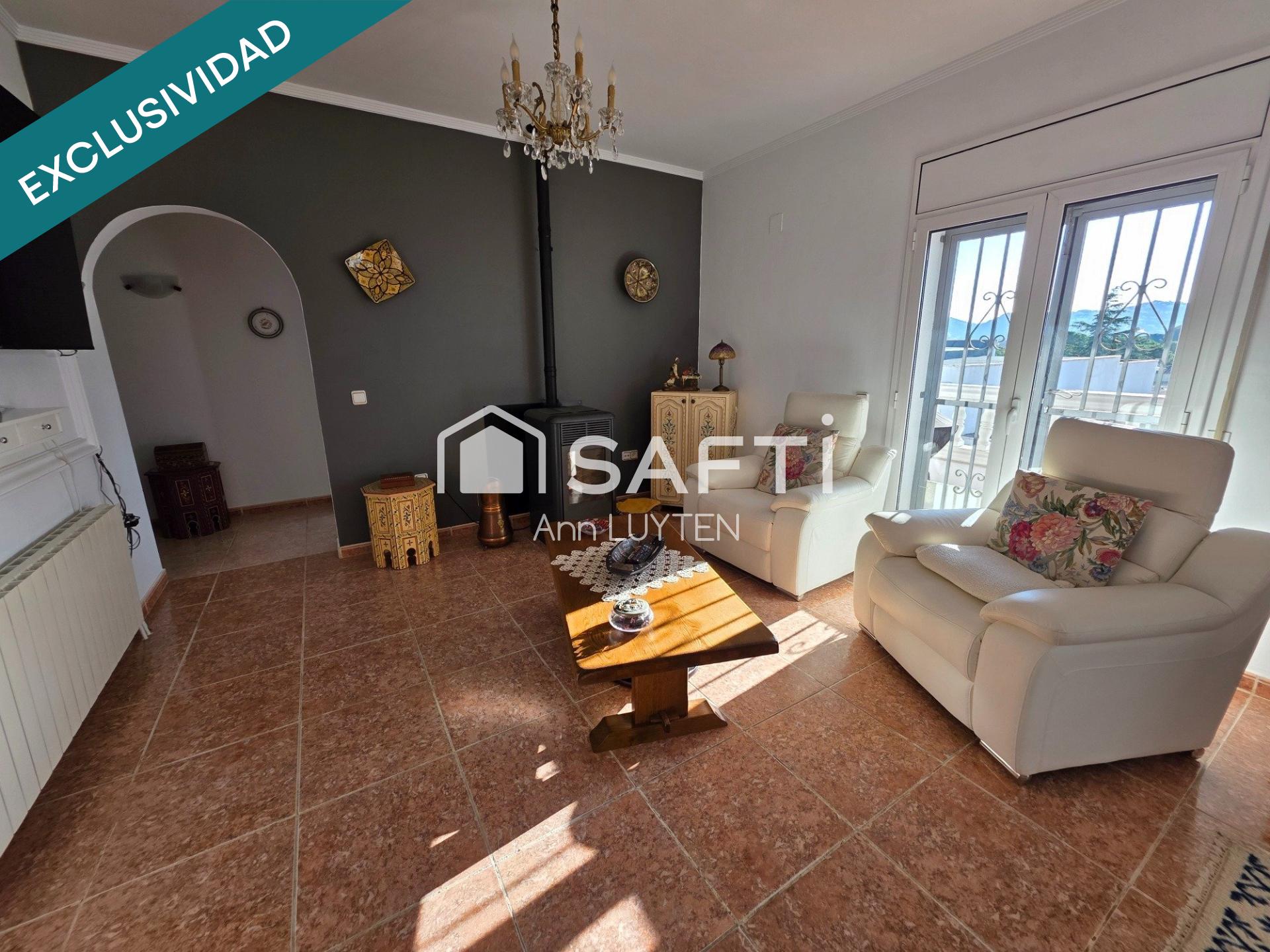 Casa parcialmente amueblada ideal para vivir todo el año. Dispone de un gran terreno vallado, con posibilidad de piscina y con árboles frutales y viñas.