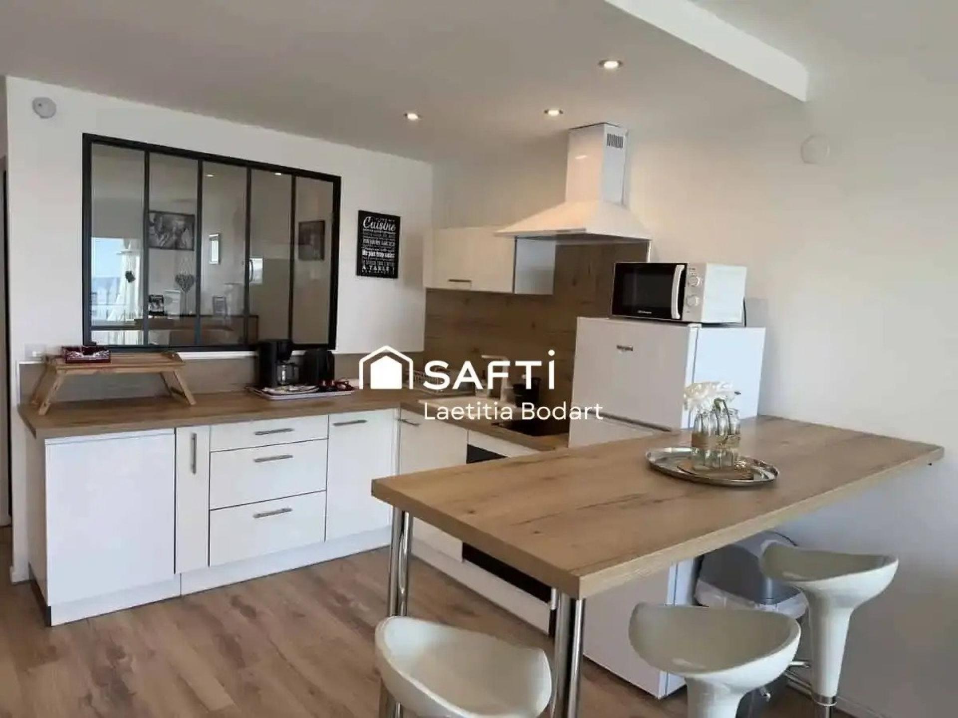 Totalmente reformado con materiales de calidad, esta vivienda combina confort, modernidad y un ambiente cálido. Ofrece 42 m² habitables a los que se suman 7 m² de terraza, ideal para disfrutar de unas vistas únicas al mar.