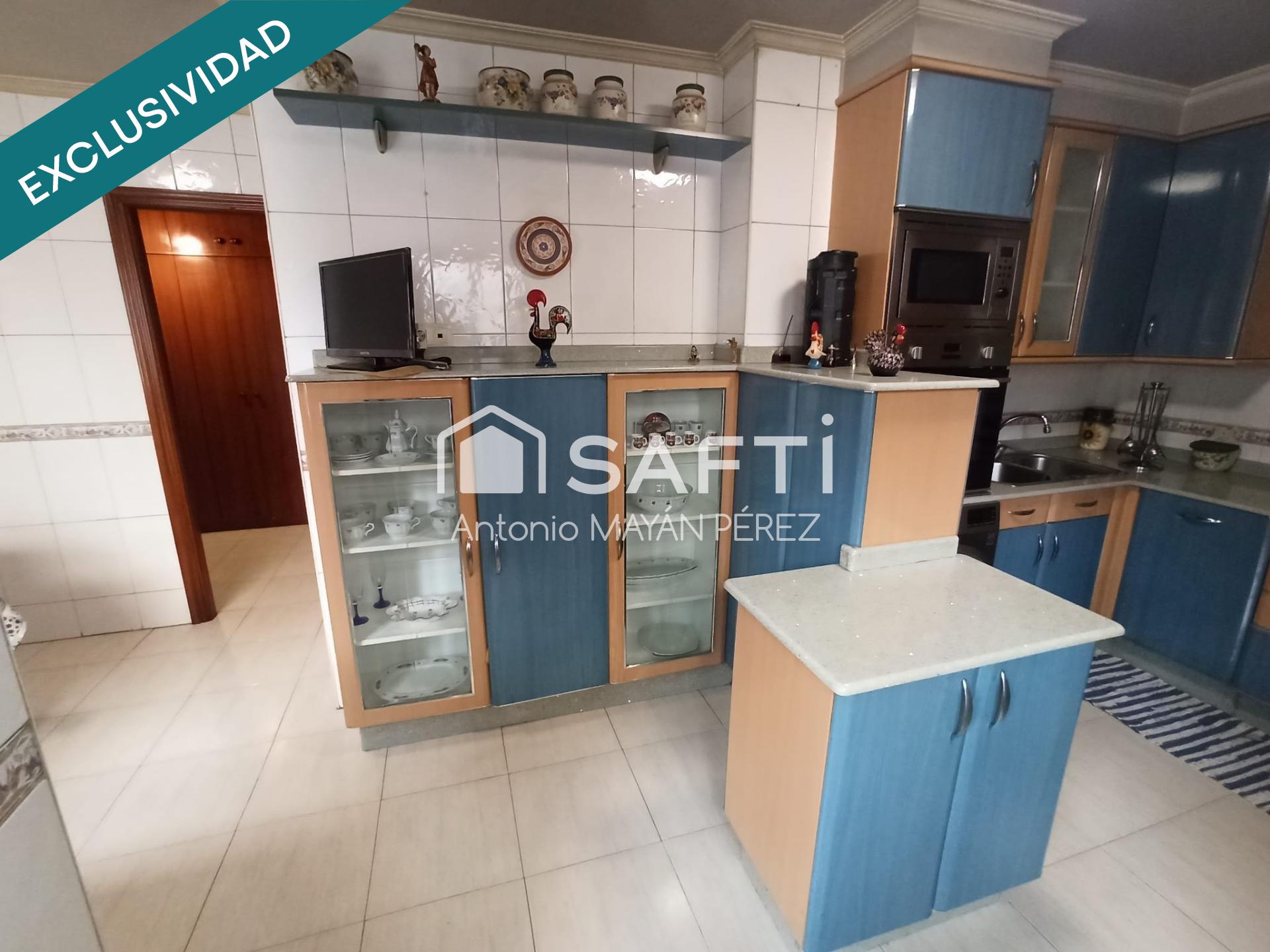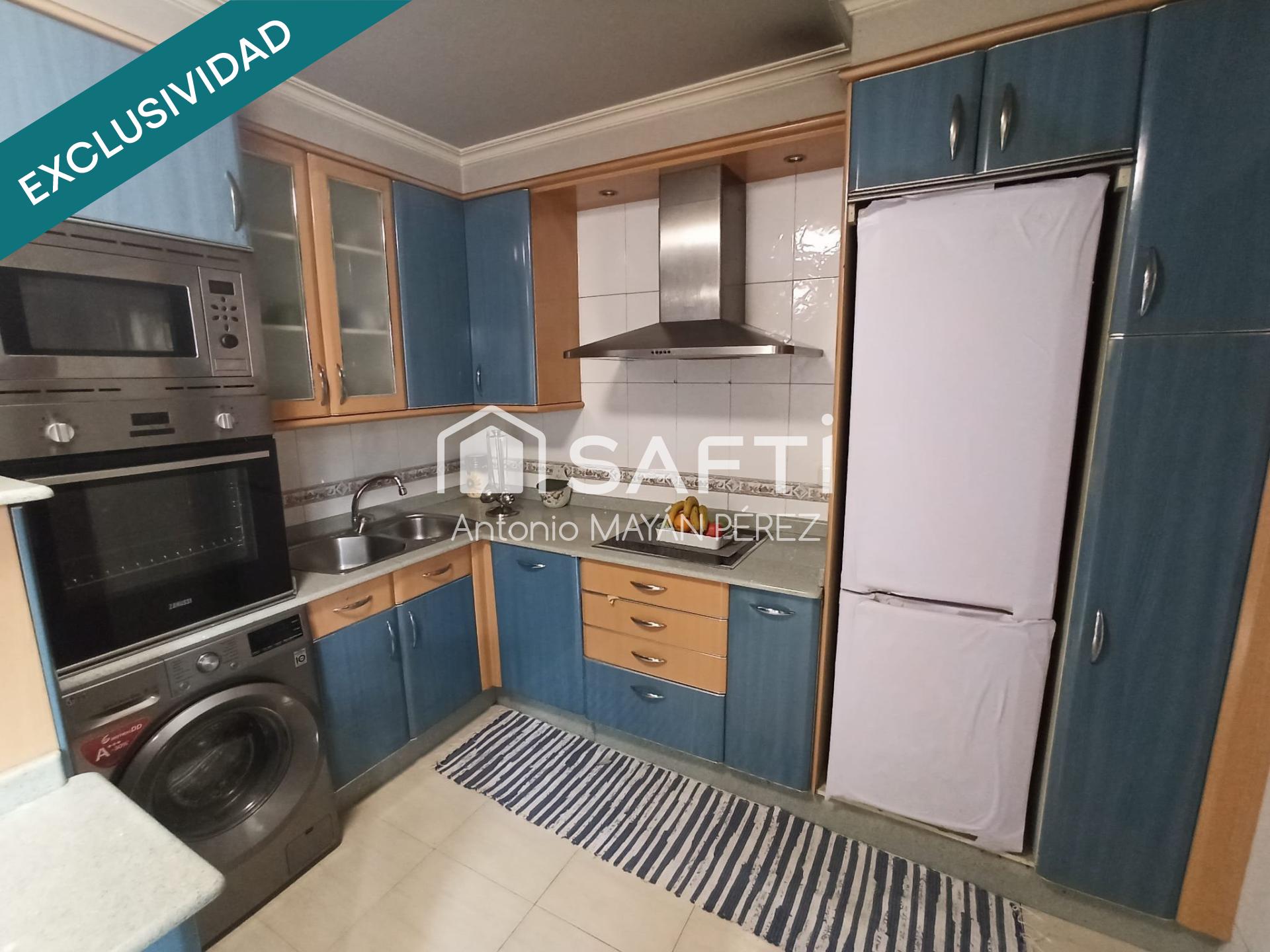 La vivienda cuenta con 3 habitaciones, una de ellas suite con baño propio, un baño principal, salón luminoso, una amplia cocina con despensa y terraza adicional, además de plaza de garaje, trastero y ascensor. Los suelos de madera en las habitaciones aportan elegancia, mientras que la calefacción por radiadores de gas natural garantiza el máximo confort.