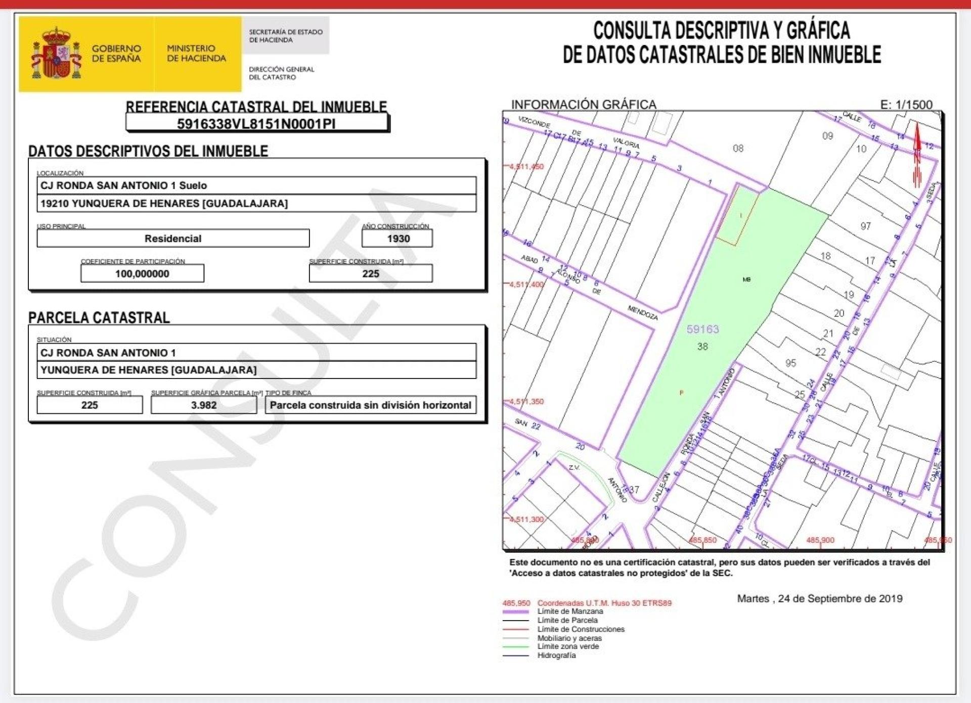 Terreno para vender en Yunquera de Henares : 3982m²