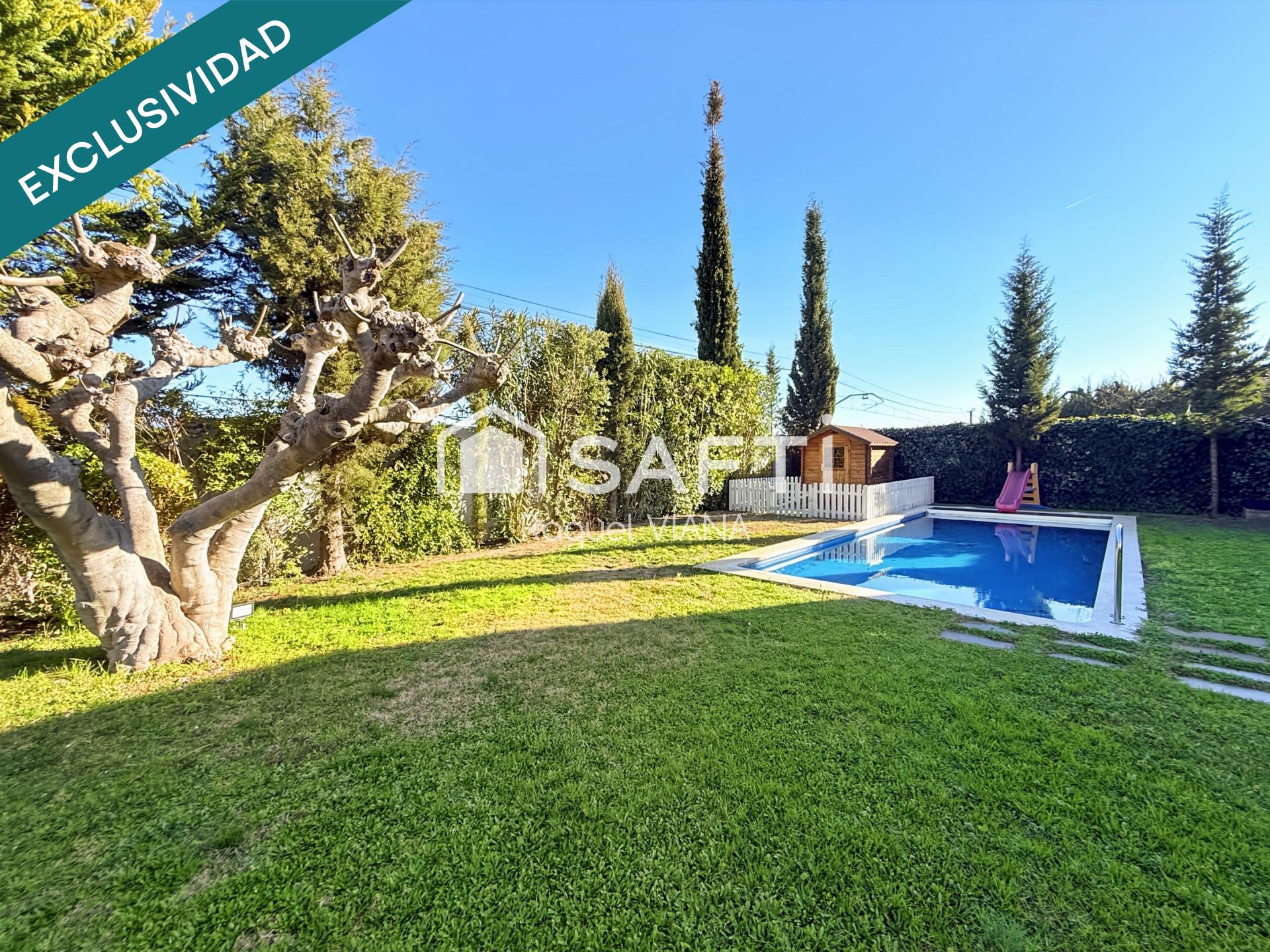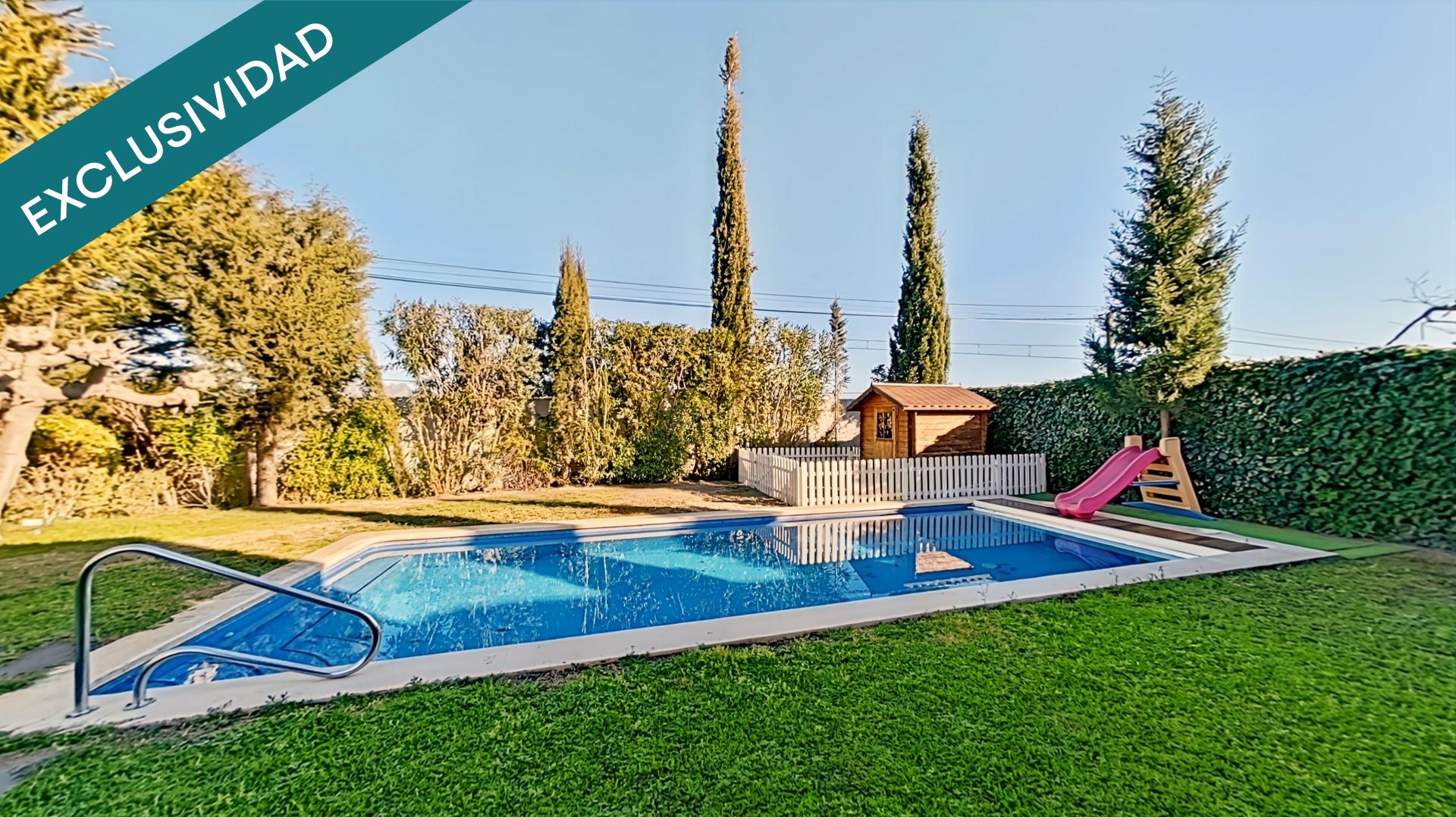 En planta baja: otra habitación doble, baño completo, lavadero, sala polivalente y salida directa al jardín con piscina y zona de barbacoa.